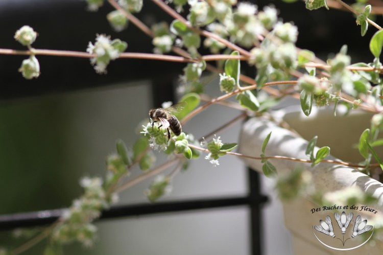 En ville, la floraison des plantes aromatiques (sarriette et marjolaine) a attiré quelques abeilles. Les fleurs ont beau être petites, elles sont visitées à longueur de journée avec une intense frénésie.